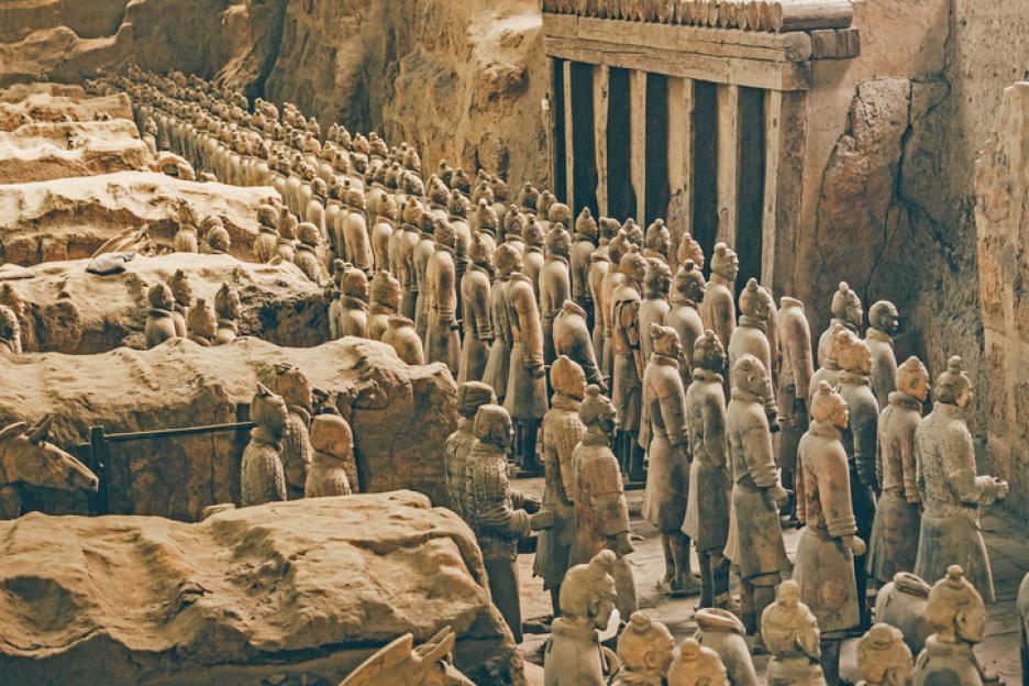 Те стоят там вече близо 2200 години. Пазят своя император Цин Шъхуан, погребан на около 1,5 км от тях. Първият император на Китай, който обединява страната през 221 г. пр.н.е., построява първата част от Великата китайска стена, въвежда единни мерки, пари и писменост в дотогава разпокъсаните княжества. Повече за теракотената армия можете да научите тук.