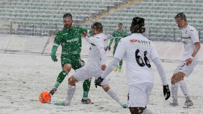 Мачът между отборите на "Славия" и "Лудогорец" беше прекратен заради обилен снеговалеж