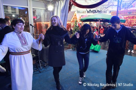 За около час площад Leicester square се превърна в сцена на българския дух и култура – в сърцето на британската столица звучаха български коледни песни, виха се народни хора и поезия.