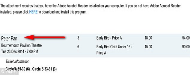 За да могат да заразят възможно по-голям брой потребители в интернет, хакерите са използвали представлението на Peter Pan в Bournemouth Pavilion theatre.