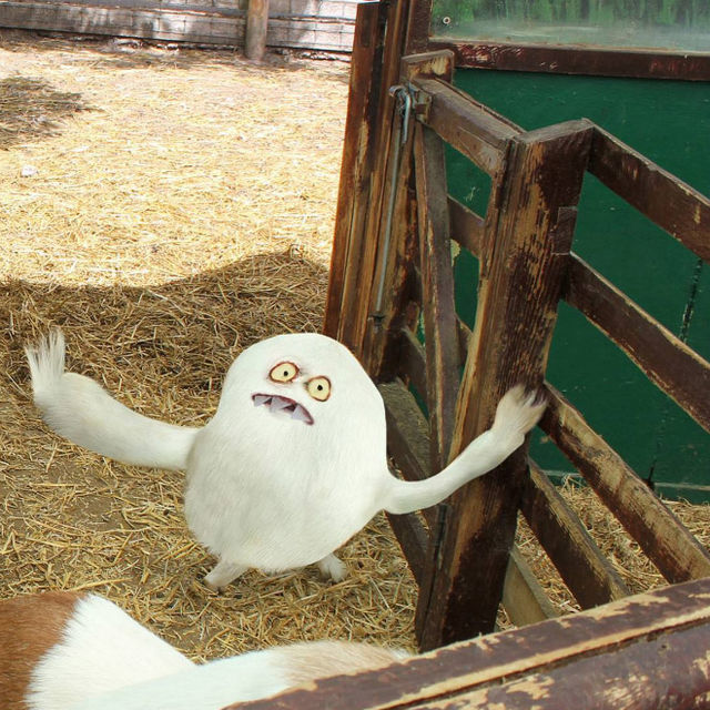 Детенце на снежен човек? Не, май е гъска. А защо е със зъби? Хищна гъска…