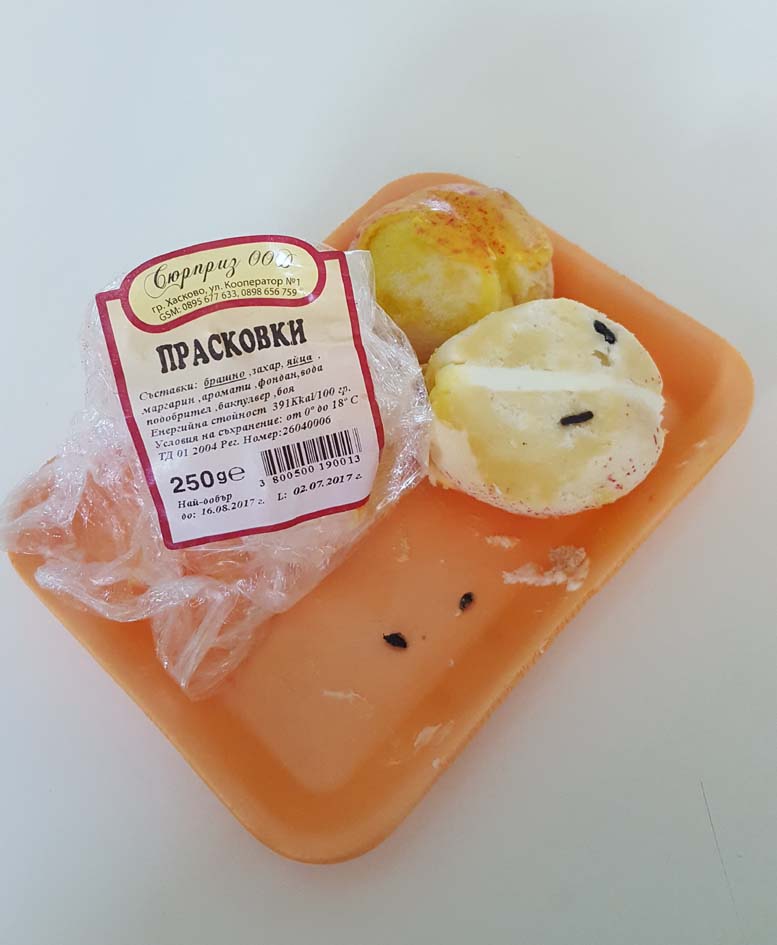Припомняме, че преди седмица джебелчанин попадна на миши изпражнения след като реши да закуси със сладкиш „Прасковки“. „Екскрементите бяха сред сладките, произведени и пакетирани от хасковска фирма“.