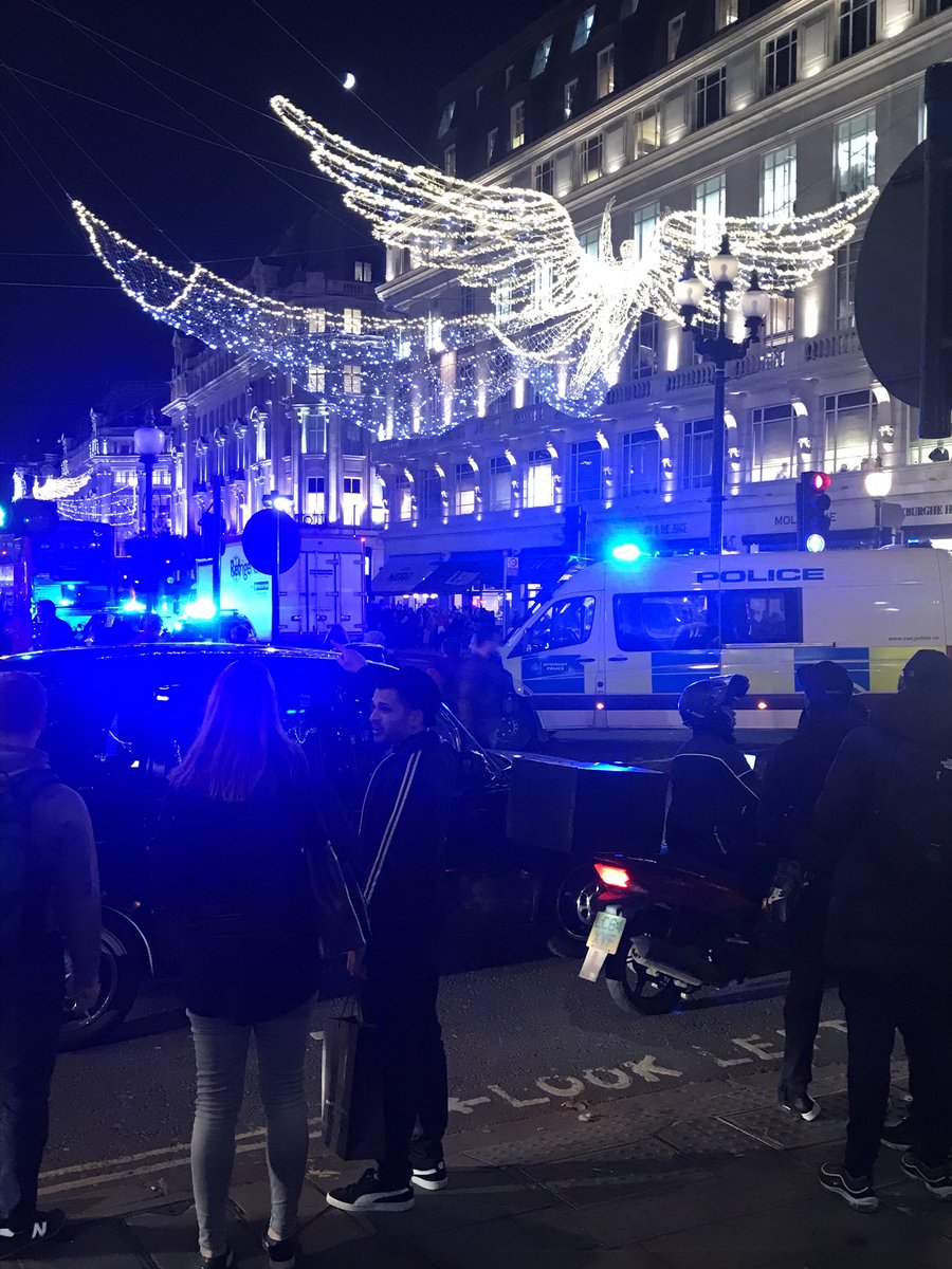 „Постоянно сирени до Цирка на Оксфорд. Изглежда, че улица „Регент“ е отцепвана“, пише очевидецът Джей в Туитър.