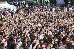 Протестите от вчера на площад “Каталуня” в Барселона доведоха до инциденти, ранили над 100 души. Тежката икономическа обстановка, увеличаващата се безработица, която по последни данни е над 20 %, инфлацията, корупцията и масово обедняване накараха много хора да напуснат домовете си и да излязат на протест. Властите в Испания бяха забранили протестите през почивните дни, но дори това не спря протестиращите преди седмица. Недоволните от правителството и управляващите партии граждани, агитираха съгражданите си да не гласуват за Испанската социалистическа работническа партия и за опозиционната Народна партия. Сблъсъците от вчера бяха най-сериозни до момента, като сред ранените имаше и униформени служители. След предупреждението на полицаите към протестиращите да премахнат лагера си и да освободят площада, демонстрантите нападнаха машините за фирмите за чистота.