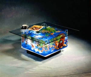 Креативните създатели на тези аквариуми превръщат водните контейнери в дамска чанта, обувка, масичка, мивка и т.н. Някои от аквариумите приличат на лабиринт, в който на рибките може би им е доста по-интересно да се движат, отколкото в обикновените контейнери с вода, които са им отредени за дом. Едно от тези произведения на изкуството се състои от два аквариума свързани с доста дълга стъклена тръба помежду им. Така рибките от единия аквариум могат да ходят на гости на рибките от другия.