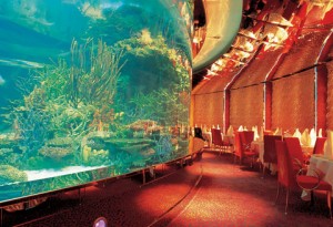 В хотела има няколко невероятни расторанта. Ресторантът Ал Мунтаха се намира на 200 м над Персийския залив и предлага прекрасна гледка на Дубай от високо. Ресторантът Ал Махара се намира под водната повърхност и предлага предимно морски деликатеси. До него се достига чрез съоръжение, което прилича на подводница.